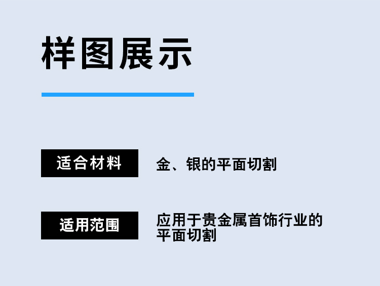 通發(fā)激光TFL-SC3040金銀飾品激光切銀機(jī),切縫精細(xì),可達(dá)0.05-0.1mm,使用合適輔助氣體,切縫光滑,不需要二次拋光。應(yīng)用于金銀首飾,小飾品,汽車零部件、手機(jī)結(jié)構(gòu)件、手機(jī)外殼、音響外殼等等多種材料精細(xì)切割。