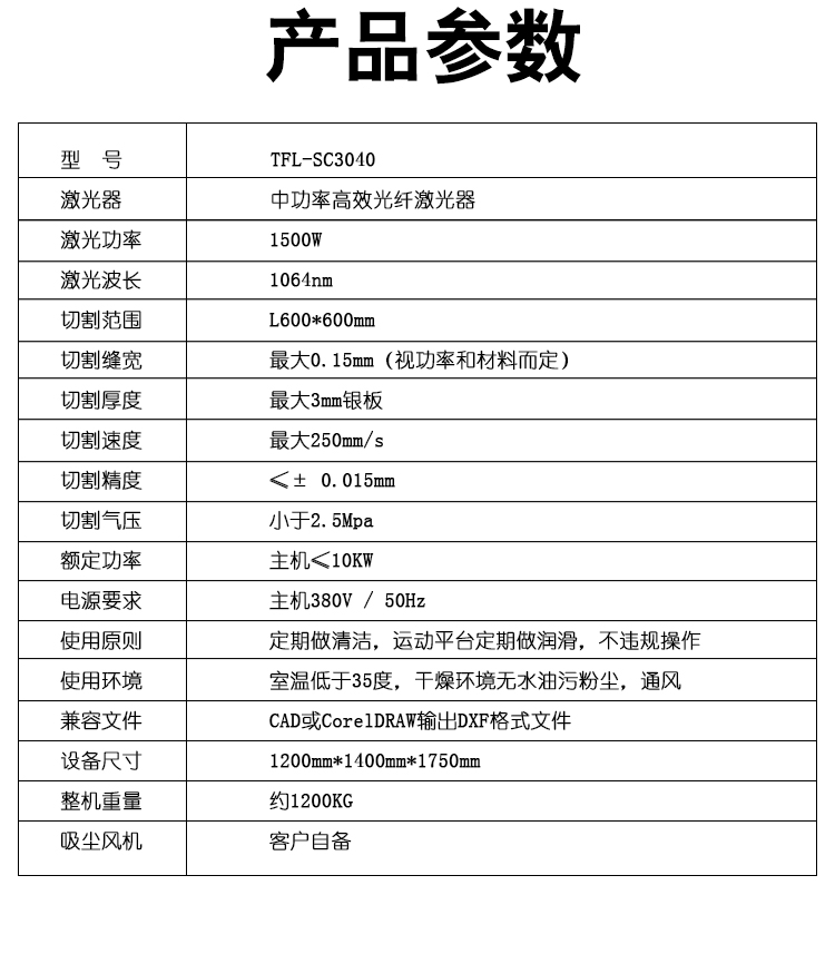 | 激光功率: | 1500W |
